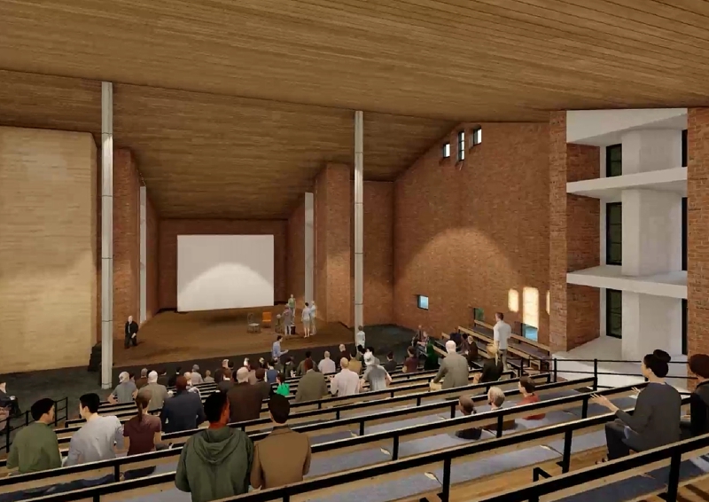 Architekt Richard Damman hat mit seinem Büro ehrenamtlich einen Animationsfilm des Bühnenhauses erstellt. Der Saal umfasste etwa 350 Sitzplätze in einem ansteigenden Gestühl, welches durch zusätzliche Stuhlreihen um bis zu 70 Plätze erweitert werden könnte. Es gäbe ein kleines Foyer, Sanitäranlagen sowie Funktionsräume für die Bühne. Die Orgel könnte im Kirchenraum verbleiben.